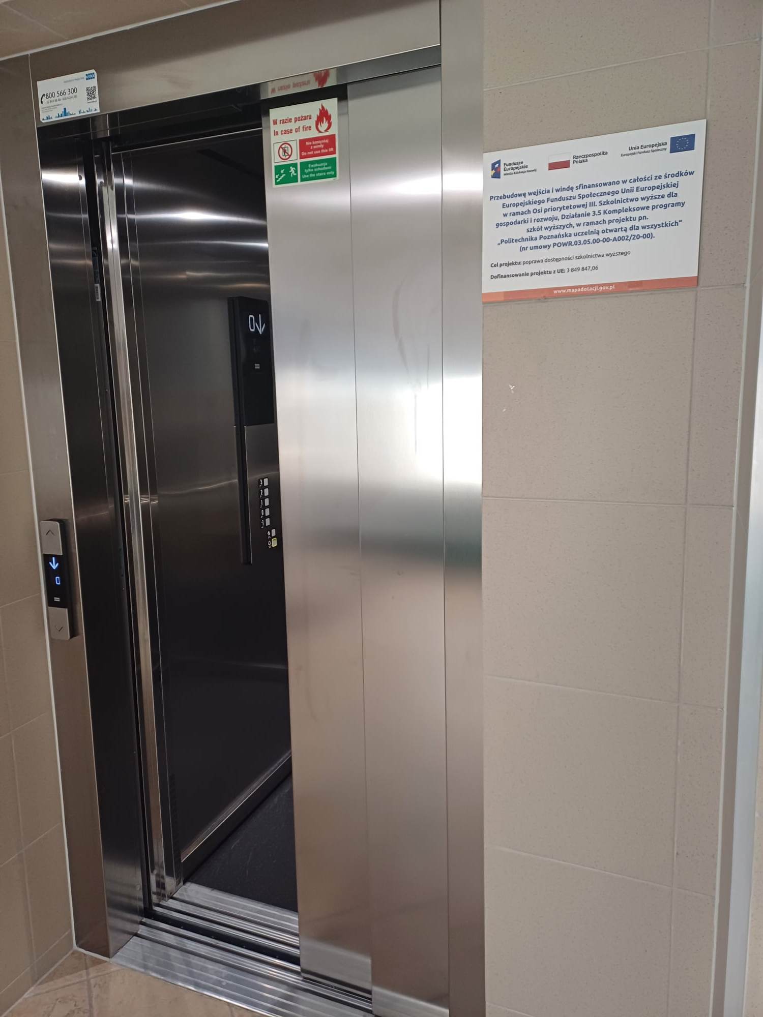 A tak wygląda analogiczna inwestycja, jaką z powodzeniem udało się zrealizować w ramach poprzedniego projektu pn. Politechnika Poznańska uczelnią otwartą dla wszystkich. Mowa o windzie w Domu Studenckim nr 2 w Kampusie Piotrowo:
