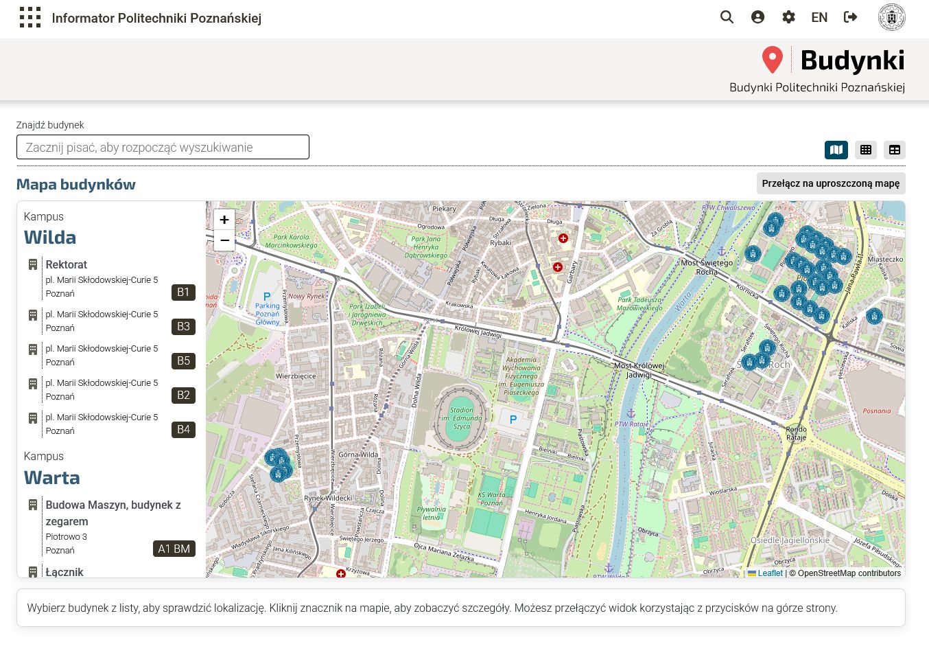Aktualnie trwają prace związane z gromadzeniem danych na temat spełnienia obowiązujących standardów dostępności przez wszystkie pomieszczenia dydaktyczne i administracyjne w budynkach Politechniki Poznańskiej.